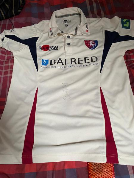 We have been kindly donated a signed Bell-Drummond (Squad no. 23) Kent County Cricket Club shirt.